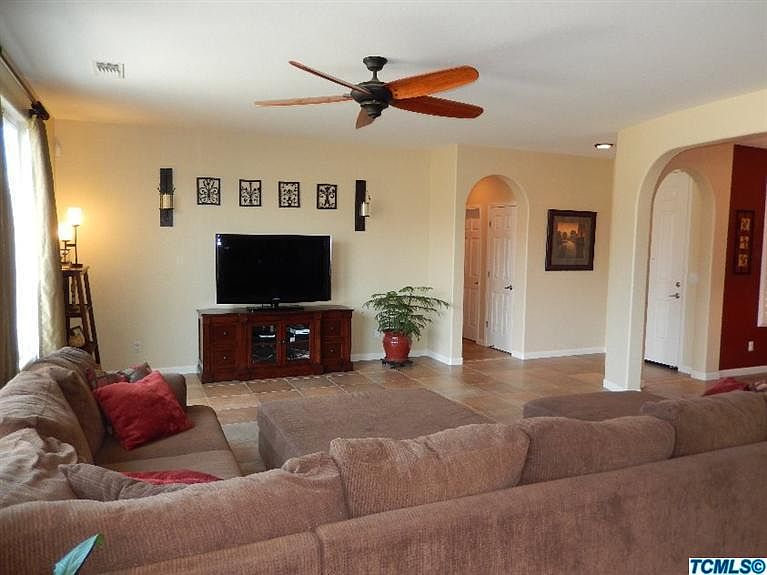 Beautiful 4 bedroom move in ready home! Open and spacious living room, formal dining room and kitchen areas with plenty of natural light. Delightful kitchen with granite counters, tile backsplash and stainless steel appliances. Charming and eye-catching arches. Large master bedroom. Master bath with double sinks, large walk in closet, soaking tub and separate shower. Tile flooring throughout the home with carpet in the bedrooms. Large landscaped back yard with plenty of patio area, curbing and a storage shed. Great home and looks like new!!