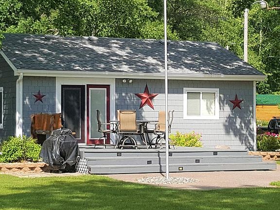 Super cute 2BR 1BA cabin on Big Portage Lake, part of the Portage Chain of Lakes. Unique and private end of road location. Recent upgrades inside, as well as new siding & roof in 2016. The lake wraps around the yard with a harbor on one side and includes 2 docks! Beautifully maintained park-like yard with a perfectly level shoreline and a hard sand beach. This is a ready-made cabin as most of the furniture is included. Enjoy right away for a full season of cabin memories. Take a look!