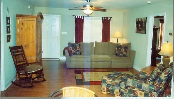The house has a split floor plan. The main living area is floored in Pergo, very durable. Everything is up to date as far as appliances etc. The home is very low-maintenance. It is on a very quiet dead end street. (The color throughout the house is a neutral tan color..NOT green like some of the photos look).