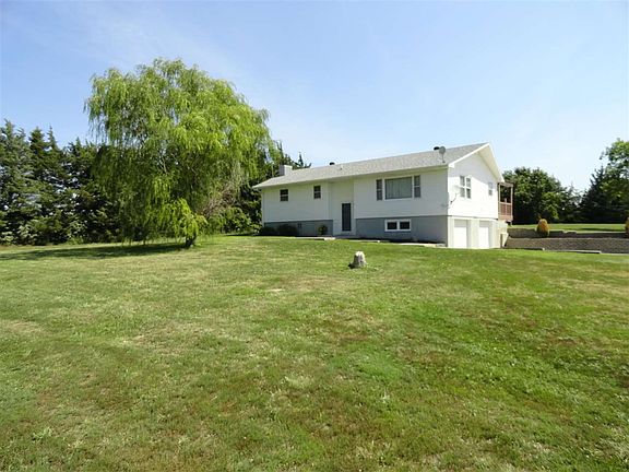 Come enjoy the peacefulness on the country. This acreage is secluded with a large mature windbreak around the entire property. There are 3 bedrooms, 3 baths, 2 car garage. The house has a large deck on the east side of the house. There is a storage shed and chicken house. The seller is willing to leave the storage container. Lots of updates!! Large walk-in shower in the basement. Propane fireplace in the family room. Master bedroom has a large closet, large bathroom with jetted tub. The roof is approximately 6-7 years old. The air conditioner was replaced in 2016. Appliances are included.