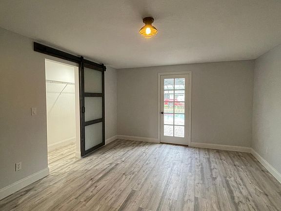 Spacious master suite with barn doors, walk-in closet, and luxurious bath