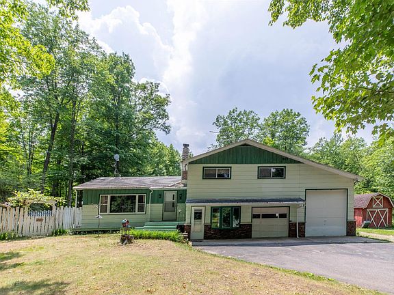 Country living just outside of Rhinelander! This beautiful lot of almost 4 acres means space for gardens, dogs, chickens, boat trailers or whatever works for you! There is an attached 2 stall garage, one tall, and a detached garage, as well as a shed. The inside has almost 2000 finished square feet. Four bedrooms, 2 full bathrooms, a living room with beautiful wood floors, a kitchen that faces the backyard, deck and three season porch. There is a family room with wood burning stove, and 2nd lower level with open space and a pool table. The mudroom from the garage contains the washer and dryer, quick access to the 2nd bathroom, and lots of storage. The property also has deeded access to a shared sandy private beach on amazing Squash Lake. With spectrum internet available, you will want for nothing here. Come check it out!
