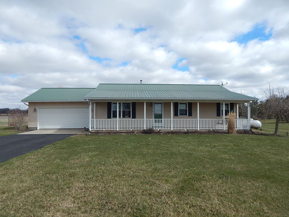 Welcome to the country in this well maintained ranch home with many upgrades for maintenance free living. The home features a flowing living and dining room into the kitchen that is perfect for family gatherings. French doors from this space exit onto a large, stamped concrete patio. Three bedrooms and two full baths at the other end of the home are nicely sized. There is a very nice two car, attached garage and a professionally built storage shed within the fenced yard out back. Don't overlook the large front porch with upgraded vinyl railing, complete with a swing for those evening sunsets. All new carpet was just installed as this home is move in ready for you.