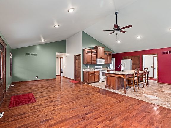 The ultimate Staycation home with an inground swimming pool and a huge party barn in Lexington schools! Ranch style home with an open floor plan, built in 2008 and featuring cathedral ceilings, cherry kitchen cabinets and granite countertops. Owner's suite with a walk-in closet and spacious bath with tub and separate shower. French doors open from the owner's suite to the covered patio and pool. First floor laundry and a full 12 course basement just waiting to be finished. Two car attached garage, 24 x 30 barn and a 40 x 60 insulated pole barn with concrete floors, extra tall door and a full bathroom. 12 x 24 salt water inground pool surrounded by a fenced in patio. There is a driveway agreement on this property. Seller to look at offers on 3/11/24 at 6 pm.
