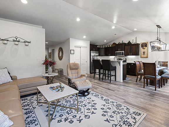 Inside, you'll find an open floor plan, featuring a living room with a cozy gas fireplace, perfect for chilly nights. The kitchen is an open concept, equipped with updated stainless-steel appliances, custom cabinetry, and a large island, ideal for meal prep and entertaining guests. Updates also include laminate wood flooring, newer carpet, and a fenced and landscaped backyard with a sprinkler system. The primary includes 2 closets and double sinks. Fabulous location in NE Bend near the hospital, parks and schools. Don't miss out on the opportunity to make this beautiful house your new home!