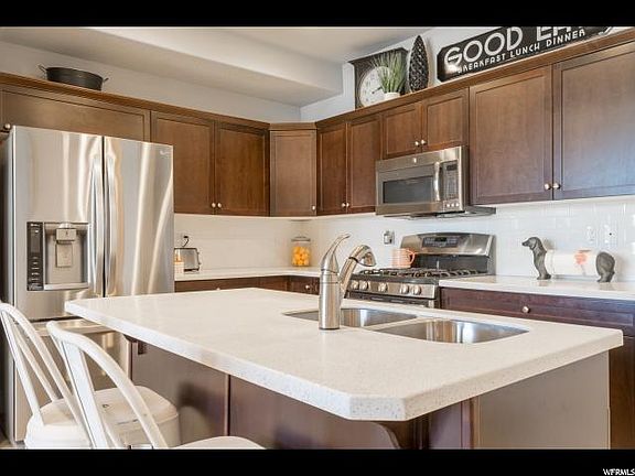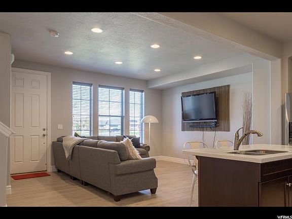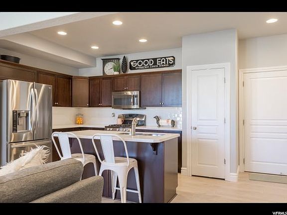 Beautiful townhome with modern styling. Adjoining kitchen and living great room area with recessed lighting and laminate flooring. Stainless steel appliances, big island and subway tile backsplash. Large master bedroom suite with walk-in closet and private master bathroom featuring dual vanities. Two-car garage, covered porch and open patio area. Future basement layout to add one bedroom and plumbing for a full bathroom.