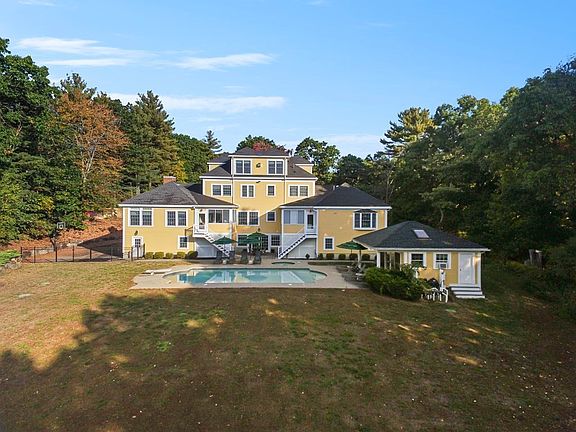 A custom estate built on over 9 acres of wooded, secluded land with 200+ ft of frontage on Stiles Pond w/ dock. Main home and accessory apartment/IN-LAW provide over 7500 sq ft of living space. Step into the custom kitchen with soapstone counters and center island & enjoy views of Boston skyline day and night. Home boasts high ceilings & wood floors throughout. Two offices make the perfect setup for remote working and/or learning. Large sunny finished walk-out basement offers endless possibilities. Luxurious master suite with vaulted ceiling, gas fireplace, dual heated walk-in closets & laundry, spacious bath and spectacular Boston view offers the perfect end of day retreat. Possible 2nd master en suite. Large fenced-in yard includes heated salt system pool, hot tub, and pool house. Potential for horses. The one-of-a-kind IN-LAW boasts a full custom kitchen, LR, DR, separate entrance, garage, laundry, walk-up attic, and offers total privacy. Too many features to list!