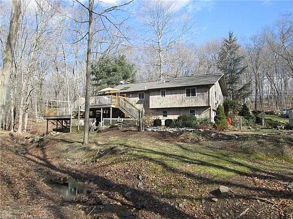 Beautiful Contemporary Ranch on 1.84 acres with stream near Madison line. Fabulous newer kitchen, updated skylit bath, vaulted ceilings & HW floors. Addt'l 728 SF in basement with FR & 4th BR. Newer windows/roof/furnace & tiered deck, hot tub & koi pond.