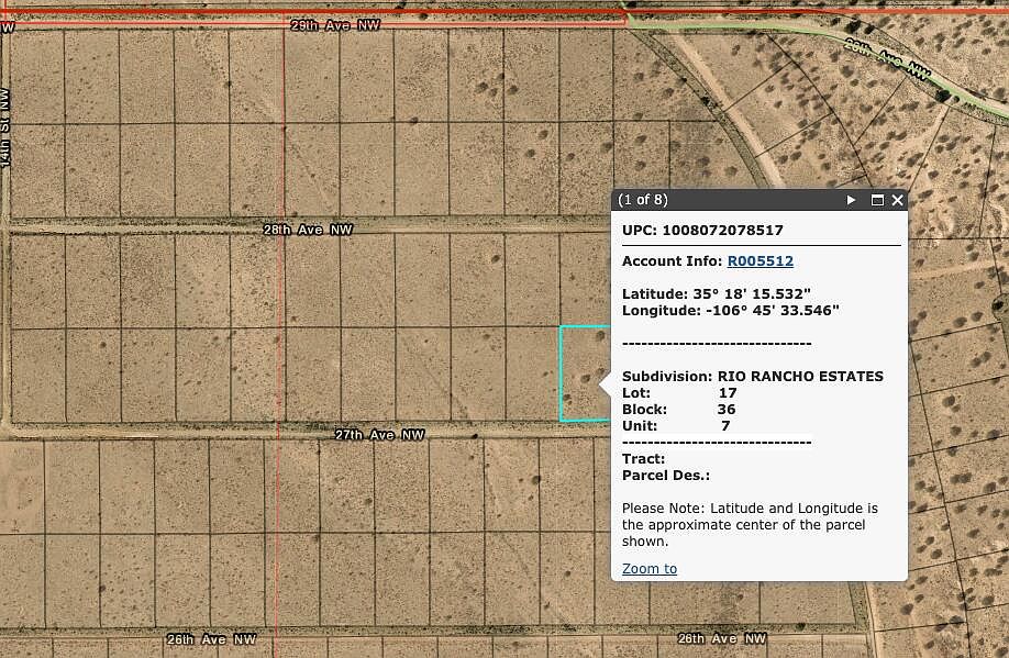 Acre #2 out of 5. Located in the desirable Rio Rancho Estates, this parcel offers the best of both worlds--peaceful, rural living just outside the city, yet still close enough to enjoy nearby amenities. With the area's ongoing development, it presents a fantastic opportunity for both immediate use and future investment. Additionally, you'll have breathtaking views of the Sandia Mountains, making this property a perfect blend of tranquility and convenience.