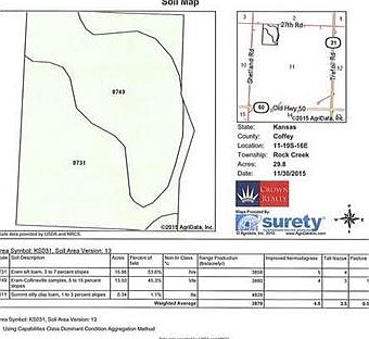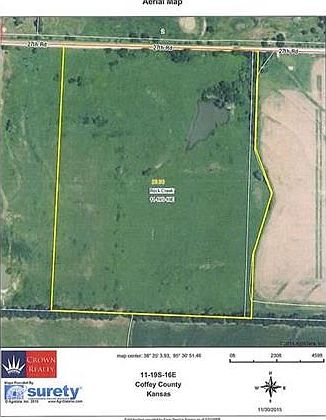 29.8 A. Of Native Pasture. Great Location. Close to blacktop and I-35. N. of Waverly, KS. Great Pasture with a Farm Pond. Excellent Building Site. RW available-- $3,000 for the meter and $750 to set the meter. Please verify at time of closing. Fenced on 3 sides. Not fenced on the West side.