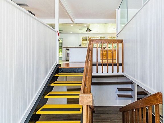 The huge front and back yard areas are landscaped with an abundance of fruit plantings: lilikoi, soursop, Meyer lemon, avocado, both white & yellow pineapple and more! See the property video to truly appreciate this special property: