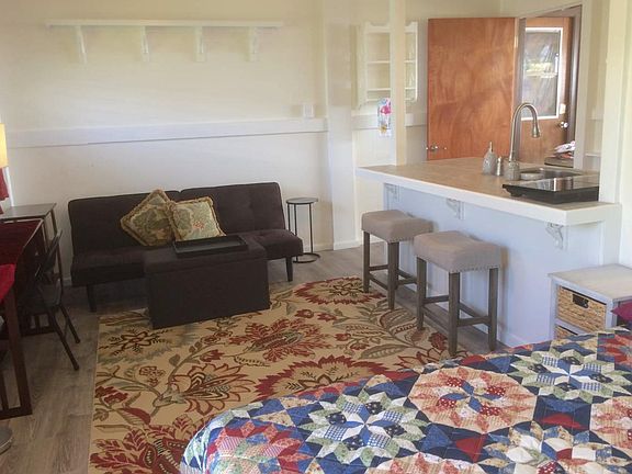 Watch sunrises over the ocean from the front yard in Pepeekeo, Hawaii ! This ocean view ohana studio on the Big Island of Hawaii is less than 10 miles north of Hilo. Only a 5-10 minute walk to post office, bus stop, mini mart. It can be furnished or unfurnished. It has either a single or a full size bed, dining area, kitchenette with beautiful tile island, seating, small desk, small book shelf, side tables, area rugs, cookware, dishes, linens, etc. Completely remodeled. One year old nearly new quality flooring. Rent is $995 per month for fully furnished. This rental amount is for one person who is willing to sign at least a 12 month lease. The price will be higher if you want a shorter lease. No month to month, as this is not a vacation rental. The kitchen is galley style with convection oven, microwave, and 2 burner induction cooktop appliance. Huge stainless steel sink, hand sprayer and garbage disposal. New tile kitchen island type counter top with cabinetry below. There is an under counter stainless steel fridge with separate freezer compartment door which keeps your ice cream frozen. Good storage with 2 closets with more shelves. Lots of shelving on walls. Many windows make for great light and cross breezes. Ceiling fan. A feeling of spaciousness is created by the nine foot ceilings. Private bathroom with new flat pebble tile floor shower. There is shared laundry area in carport with outside clothesline but no dryer, but on sunny breezy days most laundry dries very quickly. The yard is landscaped nicely and has a wide expanse of ocean view. View from living area thru carport. Back door slider to small landing which could hold two chairs and a small table to enjoy the backyard. The Ohana is private with two doors, front and back, but shares one insulated wall with main house which currently has one senior tenant. Prefer mature, considerate, reasonably QUIET adult who is employed, retired with pension, or full time grad student. The rental contract will have a tenant only living there stipulation. At least a 6 month lease required. Sorry but NO SMOKING ALLOWED in house or on premises. No Pets. Available mid Dec. 2020 and can be seen at that time. A $40 Credit / Background check required. Security deposit is $995. Utilities are shared with another unit. WIFI available in this area. We require references and you need verifiable proof of ongoing income and Renter's Insurance is required. Landlord cannot respond unless you kindly leave contact information and info about yourself and your situation (i.e. employed, lifestyle, work hours etc). Mahalo!