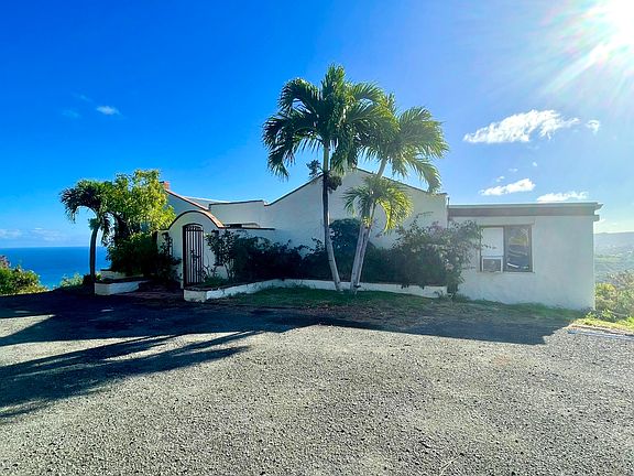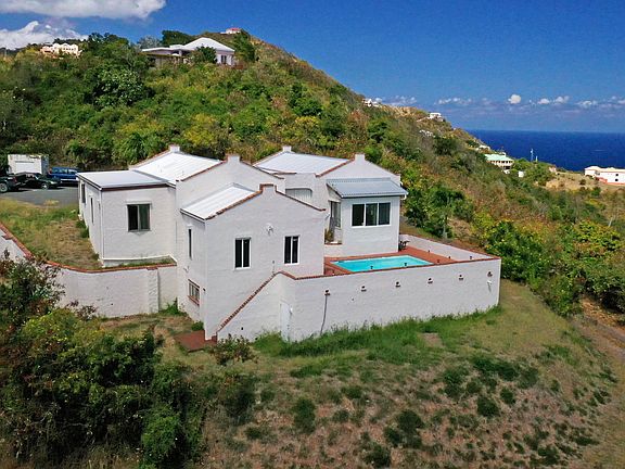 Enjoy breathtaking views of the South and North shore and East to Christiansted from this ridge top home in Concordia. This mediterranean style home sits on .87 acres and boasts a large main bedroom with views, an ensuite bath and access to the pool. Two other large bedrooms feature sitting rooms and are joined by a shared bathroom. A breezeway separates the bedrooms from the kitchen, living area and half bath and leads to the deck and sparkling pool. Laundry and storage are located on the lower level, and the home has a new roof, roomy driveway and generator shed (NO GENERATOR). With a little TLC, this home can be transformed into an amazing island retreat. SOLD AS IS