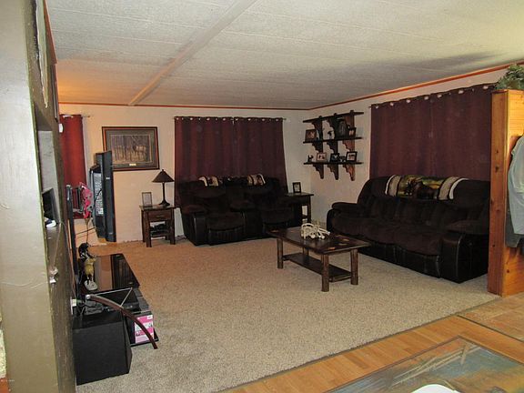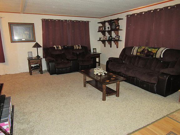 Large corner Lot, lots of upgrades inside, fenced back yard, upgraded flooring, newer appliances, wood stove, electric furnace, close to school,steel roof, 2 sheds,back deck, remodeled master & bath, walk in closet, blue pine in 2 bdrms, perm fndtn, detitled, crawl space and roof-well insulated.Ingress-egress wndws, Apple trees, Must see to appreciate. 24 hr notice