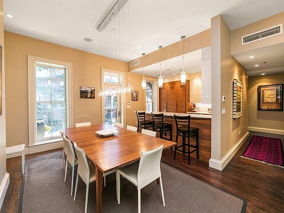 Exquisitely crafted and truly in a class of its own. Two side-by-side grand scale brownstones combined to create a single level, double bow-front home, all centered on prestigious and historic Union Park in the South End. A completely private, parlor level entrance and marble foyer are unique to this home and offer unparalleled privacy typically reserved for the single family homeowner. Open concept living/dining/kitchen with floor to ceiling windows with views of the fountains in the park. Gas fireplace, soaring ceilings and gorgeous hardwood floors throughout. Chef's kitchen with statuario white marble counters, breakfast bar, professional grade appliances and ample storage. Private rear deck adjacent to dining/kitchen, perfect for entertaining. Double coat closets and a half bath complete the living space. Master suite with walk-in closet, bonus closet, custom built-ins, gas fireplace and stunning master bath. Guest room with en-suite bath. 100% o/o, pet friendly association.