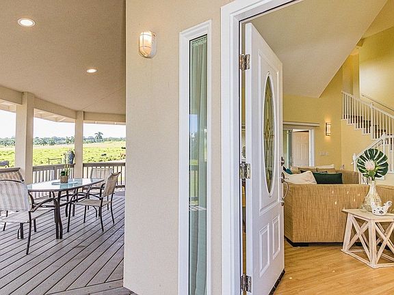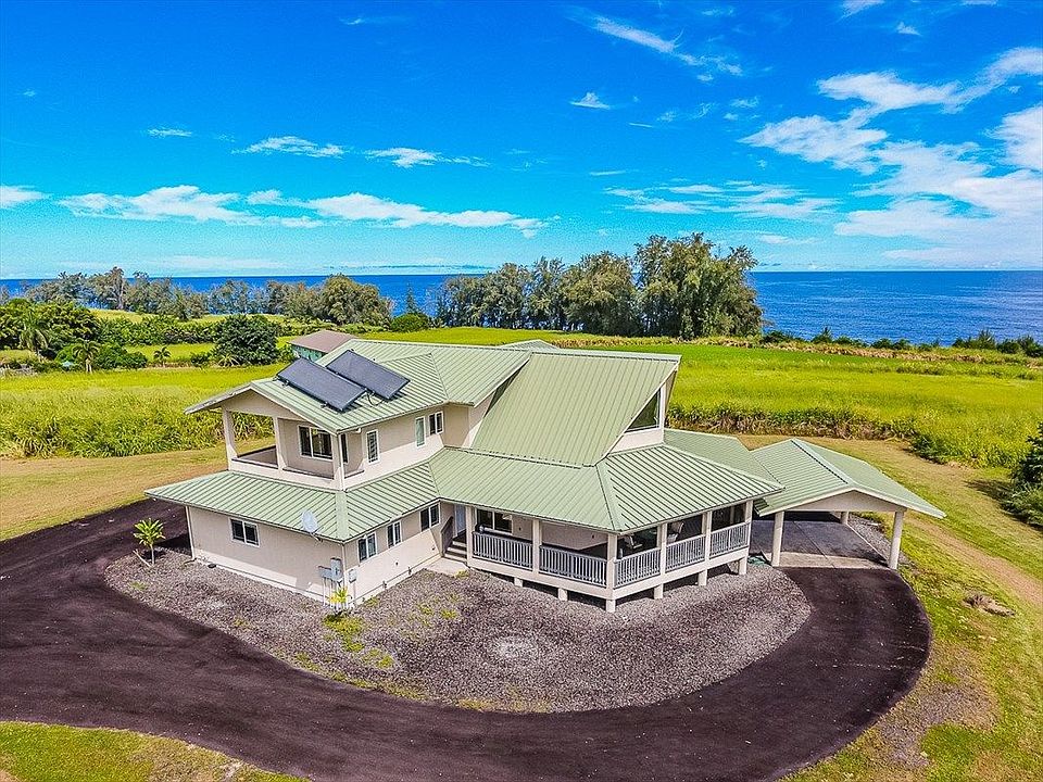 Pepeekeo Pt. Subdivision is one of the most desirable gated communities north of Hilo. The subdivision offers a buyer smaller acreage for agriculture, great views, nice neighbors and many custom built homes. Custom designed and built in 2007, this nearly oceanfront home offers amazing ocean and mountain views from many vantage points. The welcoming Porte Cochere entrance leads you to the covered front porch and deck surrounding the main living area. With views to both the coastline and the mountains, these decks are accessible from both the living area and the kitchen for indoor/outdoor living. Private balconies off both upstairs bedrooms also afford views of ocean, coastline and mountains. The unique floor plan features a guest bedroom and bath on the main level with the Master Bedroom and a second spare bedroom on the second level. A spacious Master Suite includes a large walk in closet, bath with a double sink vanity plus a covered private balcony. A comfortable sitting area in the Master overlooks the main living area. This allows for extra natural light and airflow to the Master through the Plantation shutters which screen this area off from the living area. A spare bedroom on this level includes a half bath and another private balcony to enjoy both ocean and mountain views. This room would make a great nursery for a young child or space for a home office?All surfaces are easy care with solid surface counters and bamboo laminate or tile floors throughout. The kitchen features two large pantry closets, ample cabinets, a center work island and a built in table for eating.The attached garage, laundry room and half bath are conveniently accessible off covered deck by living area. Too many extras to list. Have your agent schedule a visit soon as this home is priced to sell!