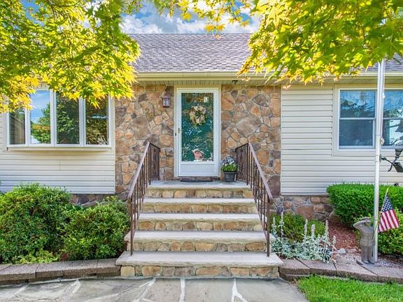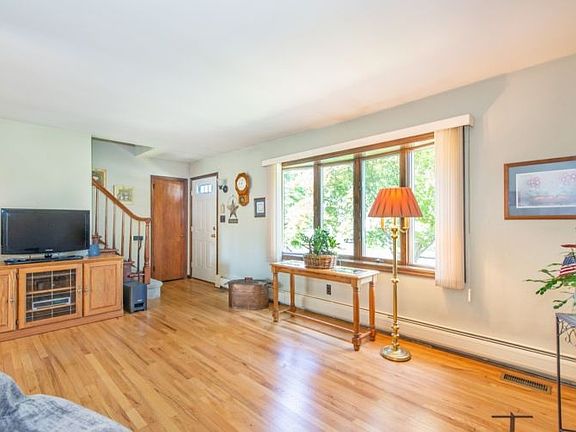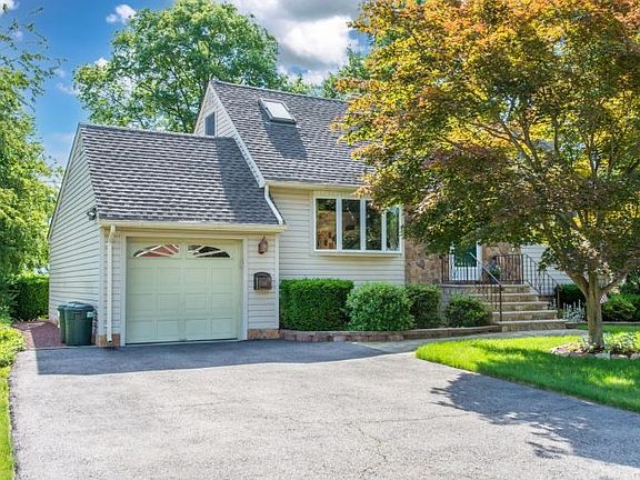 Charm and curb appeal abound all about this pristine home on 175 deep lot. Stone and vinyl front, gardens, shrubbery, stone walkways, stone bordered beds, New deck w decorative vinyl railing, new stone patio, quaint corner! First level w gleaming refinished wood floors, Expansive window in LR for light airy feeling. Dining Rm sliders bring more light and view of bucolic backyard. Ktch boast Cherry cabinets , access to attached oversize garage. 2 BRS, ( one Master size) plus full bath on this level. Upstairs Large MBR w vaulted ceiling and skylight. BR 4 w built ins and cubbies , charming layout. (3BR septic)Add 22 x 14 Fam Rm in Bsmt w new vinyl laminate floors, track lighting, pot belly stove. Anderson wndws, central A C Newer Roof, gutters, HWTR htr, oil burner , Timberline Roof(Eco Smart)