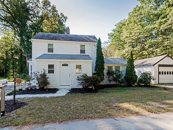 Sit back and enjoy this contemporary colonial home set on 1.5 acre level lot in quaint neighborhood close enough to major routes that make this an ideal home for commuters. Light and bright with white kitchen cabinetry and a full wall of sliding glass doors overlooking the picture perfect yard. The first floor has many areas for entertaining with plenty of dining options and a full bath. There is a working fireplace in the family room and the seller is leaving plenty of wood for the new buyer. The formal living room has a built-in china cabinet and front office (please pardon the moving boxes). Upstairs as 3 spacious bedrooms and a full bath. There is plenty of storage and a detached garage. The roof on this home is 6 years old and this home has a 1 year Home Warranty included.