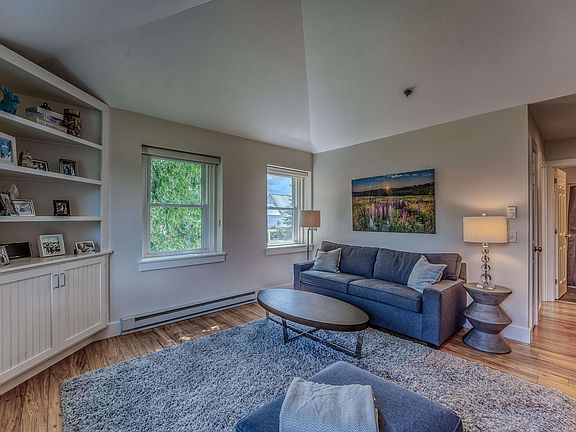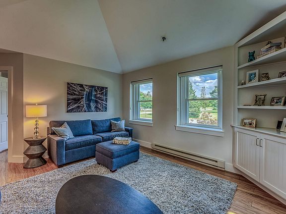 Dow Condo, in the heart of the Village and Franconia Notch. Across from the Dow Community Field with playground, river access and community events. Bright with natural daylight and views of mountains, this 2 bed, 2 bath south-facing corner unit in the Dow Academy on the easy-to-access main floor with just a few steps leading to. Extensively renovated in 2017 by prominent local design-build firm, including new mechanicals, kitchen, bathrooms, flooring, lighting, millwork, paint, and shades. Open concept kitchen has granite counters, tile backsplash, and top-of-the-line Maytag appliances. Bathrooms feature tile floors, granite vanities, glass shelves, and Grohe fixtures. Primary bedroom has large closet and en suite bath. Second bedroom contains a custom-designed built-in bunk bed. Oversized and well suited for adults with custom steps to top bunk or oh so fun for little ones! Imagine the story sharing and giggling at bedtime after their day of playing in the White Mountains! Living and dining space has large windows, soaring ceiling, and custom built-in media cabinet and shelves. There is a Deeded 8’x10’ storage unit in an outbuilding for all of the outdoor gear you have, bikes, skis, seasonal clothing and plastic "tubbies" and more. The is ample parking on site although most love it hear for the easy jaunt and proximity to Village services! With a brewery, hardware store, eateries, fabulous market, exceptional library you might feel you never need to leave!