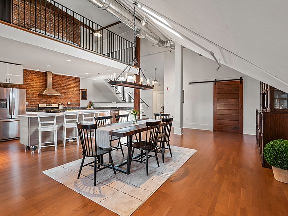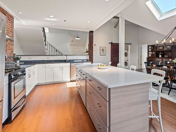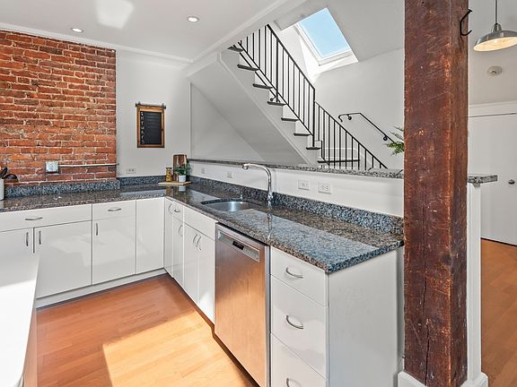 Rare penthouse opportunity in an unbeatable location, available for rent 10/1/25! This 1,600+ sqft loft with industrial flair showcases exposed brick & wood, vaulted ceilings & skylights. Entry hall with closet & stairs leading to expansive living/dining area, where original rafter beams create a dramatic architectural statement. Kitchen boasts oversized solid surface island with barstool overhang, SS appliances, granite counters. HUGE owner's BR with 2 closets easily accommodates king bed + home office/gym. Renovated bathrm includes tiled tub surround, marble vanity, in-unit laundry. Upstairs, an open loft serves as comfy 2nd BR! Ample closets + additional locking storage off the lobby. Originally a schoolhouse dating to 1894, this pet-friendly community now consists of 28 characterful units & neighborly common spaces to grill & garden! Experience enviable proximity to Shrewsbury St eateries, UMass Med, WPI, HCC & more. Building has an elevator.