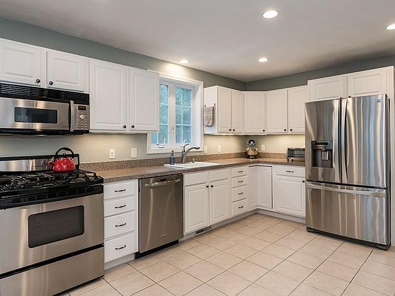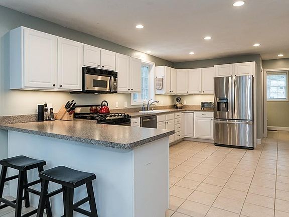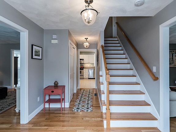 This turn-key center entrance colonial checks every box on your list! From the gleaming hardwood floors to the open floor plan, from the central air conditioning to the gracious master suite, this move-in ready home is sure to please. The spacious kitchen features stainless steel appliances, gas cooking, a breakfast bar, and a generous dining area. It flows into two sun-filled front rooms that offer flexibility to become your living room, den, or formal dining room. Upstairs you will find a large master bedroom with a walk-in closet and en-suite master bathroom. Two additional bedrooms, a full bathroom, and a sunny office complete the second floor. The home also boasts a clean walk-up attic as well as a family room and mudroom in the finished basement with access to the garage. Enjoy the over 30,000 square foot wooded lot from your deck or large lawn this spring and summer. Just move-in and make this home your own! Offers due Tuesday morning 9:00 am.