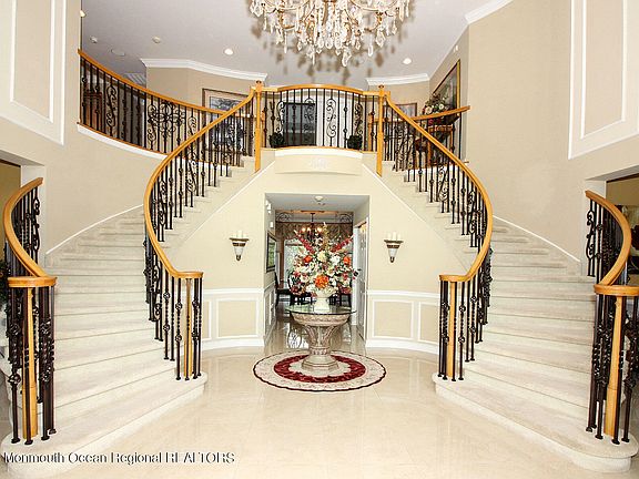 Welcome to this magnificent stately home on a prime cul-de-sac location. The massive two story stunning foyer with the cinderella stairway sets the tone for the dramatic entry. This 5 bedroom, 4 1/2 bath colonial has breathtaking amenities second to none. The newer gourmet kitchen with Viking appliances has porcelain tiles which are throughout the first floor. The first floor also showcases coffered ceilings, tasteful moldings, custom vanities & cabintry. The master bedroom suite has a sumptuous master bath, private sitting area, room size walk-in closet, & separate dressing area. A lot of thought went into every aspect of this home. The pristine grounds are enhanced by a salt water pool with a waterfall, hot tub, fire pit, and an outdoor kitchen. This home is the definition of luxury!