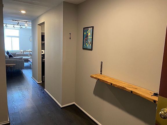 Enjoy this 1 bedroom 1 bath unit in the heart of Towson. Wake up to a sunrise view of the Towson Circle East skyline from your 137”x105” private balcony. This unit has been upgraded with a new refrigerator, dishwasher, range, microwave, disposal, sink and sink faucets, smart thermostats, and granite countertops. The paint is one year old both inside the unit and on the balcony, along with new vinyl plank flooring throughout the unit. All closet bifold doors have been replaced. The bathroom has a new one year old vanity, sink top, and toilet. Sliding glass doors are fully functioning as are HVAC units which have been recently serviced. Bathroom and bedroom lighting have been upgraded. The building has 24/7 front desk concierge with recently upgraded elevator (2018) and sprinkler systems, 24/7 exercise room, outdoor pool, library with WiFi and a TV, and a picnic/patio area. Garage parking in the building is available for $100 per month. Street parking and other parking lots are available. Within walking distance to an ever-changing variety of restaurants, bars, shops, the Cinemark cinema, gyms, salons, boutiques, the Towson mall, and Towson Farmer’s market. This unit comes fully furnished with a 15 month old king size Sealy Beautyrest pressure smart bed with an adjustable frame mattress base, midcentury modern sectional couch, and 65 and 55 inch flat screen TVs. All other furniture and accessories included. What you see is what you get!