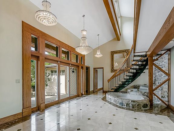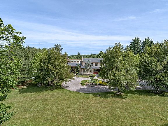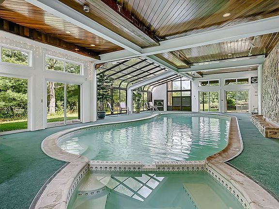Country Living at its Finest! Custom Contemporary regally set on 2+ park-like acs.Unique (1989 built w many upgrades) home presenting (4876 sft + 2818 sft W-O fin lowr lvl 4 bedrms, 2 full bths, 5 half bths and heat indoor pool. Featuring: marble foyer w floating staircase, natural lighting, patio drs and skylights, volume ceilings and soaring stone fireplace, (6 in all), gourmet kitch w cherry maple cabs, granite counters, open concept dining rm, oak panel game rm w wet bar, home office w frplc and priv entrance, first lvl, lavish master suite w lux bath, 4 w-in closets, dressing area and stone frplc, 3 bedrms and full bth complete 2nd lvl. Daylight low lvl offers changing rm and showers for pool, prof oak bar and full 2nd kitch. 3 car attach garage. Just Imagine the Entertaining Possibilities!