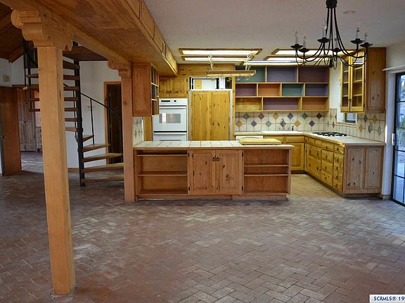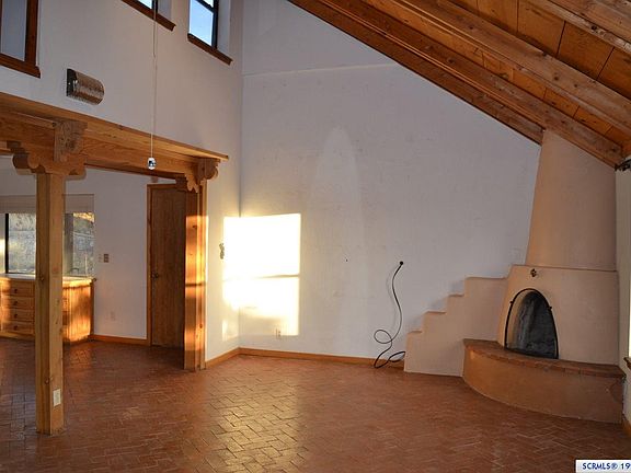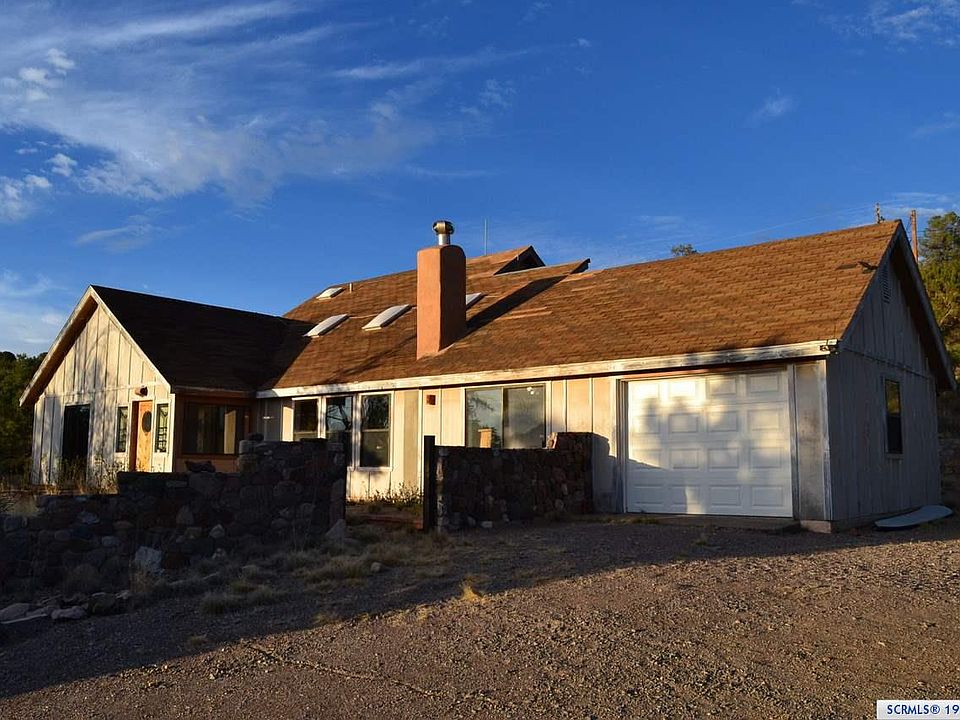 This home is being sold AS IS. Gorgeous 5 AC lot with city water, natural gas and views!! There are many unique artisan characteristics to this home: brick floors, vaulted ceilings, handcrafted built-in furniture, kiva fireplace and custom wood kitchen cabinets. Master BD/BA are downstairs. There's another BD/BA and a loft office upstairs. Large family room or hobby room off of 1 car garage. The infrastructure is there, but this home does need work. The home's character, mountain views, usable land, proximity to town, and city utilities make it a rare find. A creative buyer could make this property stunning. Large metal building and storage shed. Newer septic system.