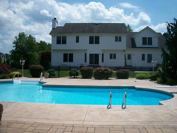ELEGANT,LUXURY ESTATE HOME FOR SALE 5 bedrooms,situated on a CUL DE SAC. This SOPHISTICATED home is located on the Jackson/Freehold Border in prestigious Farmingdale Woods. The 2 story entrance foyer boasts 9ft ceilings Custom decorative & crown moldings, Palliadium window, hardwood flooring thru out 1st floor & a Beautiful Sweeping staircase w/balcony. Recessed lighting thru out Elegant Trey Ceiling in the formal dining room. Step into the NEW STATE OF THE ART GOURMET KITCHEN. The REFINED kitchen has all the BELLS & WHISTLES. Butlers panty w/Wine Fridge,Subway tile backsplash, Top of the line Stainless appliances & more. HUGE MASTER SUITE w/ VAULTED CEILING & Adjacent SURPRICE bonus suite. PRISTINE BACKYARD W/Stone patio deck, Custom 28x40 Heated In Ground Pool & Fire Pit. CUSTOM BASEMENT