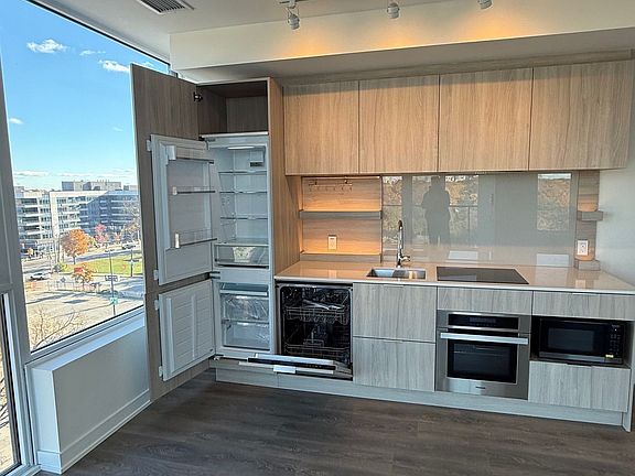Open-concept layoutFloor-to-ceiling windowsSpacious south-east exposure balconyModern kitchenQuartz countertopsBuilt-in stainless steel appliancesStylish finishes
