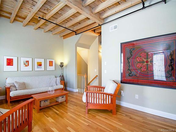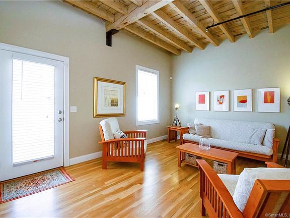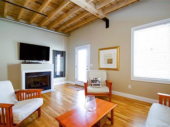 Spectacular condo has great views of the pond from the large deck. When inside you will experience the old wood timbers from the time this building had been a mill. Soaring ceiling heights on all levels lends to the spaciousness unit. Three levels of living. First level has an office or could be a third bedroom. No closet at this time, one could be added. Large storage area for easy access. Main level has living room, kitchen, eat-in area and half bath with laundry. Hardwood floors on the first floor. Second floor has two spacious bedroom each with their own full bathroom and two large closets.