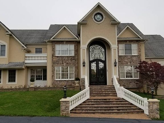 This majestic, custom-built estate home with a three car garage is situated on 1.34 acre lot in the exclusive community of West Wynd in Ivyland. You'll enjoy the privacy of this serene, tree-lined cul-de-sac setting with panoramic views. Drive up to a governors drive way and enter through a welcoming two-story foyer with gleaming hardwood floors and circular oak staircase. Relax in the spacious family room with fireplace which boasts cathedral ceilings and opens to a second stairway, loft and dramatic balcony. The gourmet kitchen with two-story breakfast room overlooks the multi-tiered composite deck with hot tub, great for entertaining or simply relaxing! The large 750 sq/ft sunny conservatory with high ceilings and fireplace is perfect for that second family room, music room, game room, the possibilities are endless. The library has built-in desk and floor to ceiling book shelves and another fireplace. Full bathroom on the first floor next to the fifth guest bedroom. Upstairs the master suite features his and her walk-in closets, walk-in shoe closet, walk-in linen closet, an extra sitting room or study and bathroom with a large soaking tub, his and hers vanitites and makeup boudoir. A princess suite bedroom with walk-out balcony and own full bathroom. Two more large bedrooms, double vanity bathroom and large loft overlooking the first floor complete the second floor. The expansive 2700 sq. ft. walk-out basement with 9 ft. ceilings is yours to finish adding to the almost 5,600 square feet of current living area. Bring your family to this spacious and spectacular home.