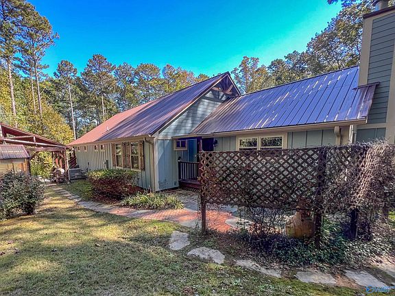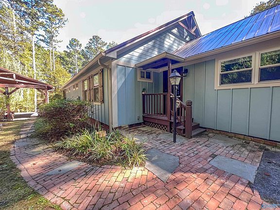 A Fisherman's Dream! Welcome home to your secluded, lake access property! Mid lake and only 1/4 mile to one of the best boat ramps on Lake Guntersville. This home is Craftsman Style and custom built featuring 3 Bedrooms, 2 Baths with open concept living room and kitchen with beautiful island with granite counter tops. Gorgeous wood vaulted ceilings, 2 stone fireplaces and dining room. Primary suite has 2 closets including a walk-in/safe room. Tons of covered porch space including a screened porch off the living room! 2 Car Carport, Two detached garages, one being 30x20 perfect for your boat! Sitting on 1.16+/- Acres surrounded by woods, separate greenhouse and additional lot available!