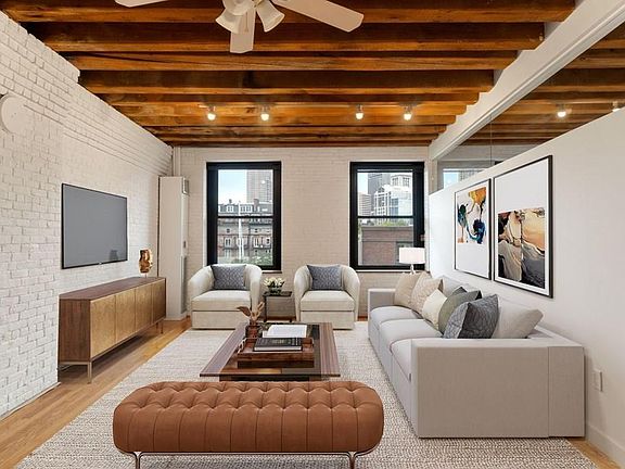 Fabulous opportunity to live at prestigious Lewis Wharf on Boston's Waterfront. Meticulously renovated, this South facing warehouse style two bedroom condo is in move-in condition. With exposed brick and beams, hardwood floors, ceiling height and immaculate white tiled bathroom, this amazing unit will wow your sense of style. A perfect blend of old and modern features. The well-appointed kitchen is open to a large living area allowing for fabulous views of the city skyline and harbor. Features include ss appliances and granite countertops. The developer brilliantly added "borrowed light panels" as additional lightwells between rooms. Every closet was custom designed by California Closets to maximize hanging and storage space. This unit will not disappoint the viewer and may offer the perfect work from home alternative. Lewis Wharf is an elevator building with 24 hour concierge, manicured gardens surrounding this pristine property and a private swimming pool.