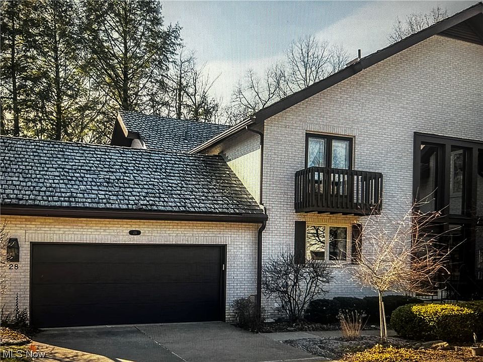 Beautiful Auburn Knolls community; see the beauty of the neighborhood. Gorgeous brick condominium in park-like setting; rear views of woods & stream. This property has been completely updated; is ready for new owner to enjoy. Open foyer with abundance of large windows soaring to second level. Great room features a German schmear fireplace, crown mold, & wall of windows overlooking breathtaking views. Great Room opens to DRoom w/access to hickory kitchen boasting new custom island, new LG appliances, & new light fixtures. Laundry room off kitchen, in addition to half bath. Two car garage off kitchen area. Open staircase from foyer leads to second level showcasing Owners' bedroom w/gas fireplace, sitting area, full bath w/new custom tile shower, walk-in closet, second closet, & balcony/deck from bedroom overlooking wooded views. Second bedroom also has balcony w/rear view, private bath w/new shower & tub surround. New carpeting in both bedrooms, new closet systems, & new ceiling fans. New vanities in bathrooms, & new LVT bath flooring. Lower level is finished w/new carpet, bar area, & third carpeted room for bedroom or work-out area. Unfinished area of bsmt. offers plenty of storage & glass block windows. Updates & special features: new LVP flooring throughout first floor, all walls newly painted w/all accents, doors, & trim. New roof. Garage door & opener (2019). Fabulous location just minutes from Belden Village, I77, Gervasi & walking trails. Very special property.