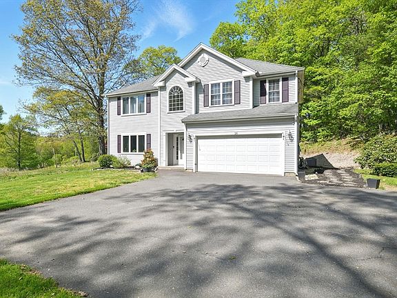 This spacious 4BR Colonial in area of newer homes is everything your country heart wants. The open floor plan & two-story foyer let in plenty of natural light. Get cozy by the gas fireplace in the handsome LR. Enjoy cooking, relaxing or entertaining in the open FR, DR with warm pellet stove and kitchen with gorgeous granite counters, radiant heat under tile, & abundant storage. A half bath completes this level. Upstairs find an expansive en suite primary w/walk in closet & full bath. 3 more large bedrooms, laundry, & another full bath complete this floor. Additional storage in the attic with pull-down stairs & plywood floor. Updates include both full baths, new well pump & tank, new LR and FR floors, new DW and microwave. Outside enjoy the patio & fire pit along with gorgeous sunsets, starry night skies, & all things nature. This amazing country setting is just minutes from beautiful downtown Monson, major roads, the CT border & Peaked Mountain & Cedar Swamp Trails.