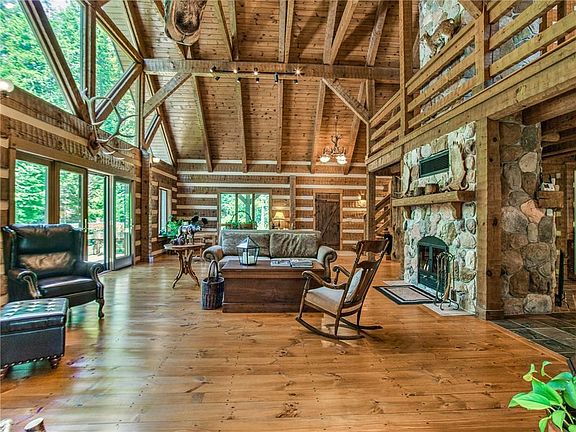 What an Exquisite & meticulously built & maintained Hearthstone Log/Post & Beam home as seen in 'Log home living Sept 2013 edition', which boasts expansive ceilings, breathtaking living room w/ an extravagant stone hearth wood fireplace, super neat and clean chef's kitchen that has a viking gas-range and hood, huge refrigerator, island with small wash sink, granite counter tops, the kitchen also has a gorgeous fireplace, exposed beams through out, beautiful wood and tile floors & much more w/ over 5700 square feet of elegant living space. Property consists of 641' of waterfront on Duck Lake but also has quick access to Junior Lake as well, large garden areas, out buildings, full house generator, heated 2 car attached garage, and super private location but yet within 1.5 hours of Bangor or within 30 minutes to the Lincoln area for major amenities. If you are looking for a place where you can't hear or see your neighbors then this is it!