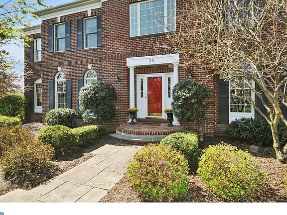 A serene setting on close to two magnificent acres, a sensational floor plan and exceptional materials throughout. Majestically positioned just beyond the pear tree lined driveway and blue stone walkway, 28 Baker Way is a sophisticated and stately home. An open floor plan creates substantial, grand spaces that are equally suited to intimate gatherings or entertaining many. Meticulously maintained hardwood floors create continuity throughout the home. The gracious, two-story foyer opens to the living room on the left and the dining room on the right. The gorgeous chefs kitchen offers a natural gathering space - an enormous center island befitting food preparation, serving, dining and mingling in equal measure. Elevate your entertaining with a wine refrigerator and butlers pantry. The breakfast room opens to both the family room and the sun room. The beautifully proportioned family room has a gas fireplace and windows galore, offering views of nature at every glance. A private office is accessed from the family room through French doors. The sun room leads to a handsome bluestone patio anchored by stone pillars and a yard where greenery and trees seem to be endless - a true oasis and an exceptional use of space. Choose the front or back staircase to access the second floor, where you will find the master bedroom suite with a spa-like master bathroom, two walk-in closets, and a sitting room with a fireplace. At the other end of the hallway are 3 additional bedrooms, one en suite and the other two sharing a Jack and Jill bath. The full, walkout basement with extra height added offers so much possibility to finish as you wish. The expanded mud room off the kitchen leads to a 3 car garage and has an additional side door entrance for convenience. Fabulous High Pointe at Hopewell is just minutes to highways and train stations for commuting, and moments to the charming town of Pennington. It is located near Capital Health Hopewell Campus. The schools are the highly acclaimed Hopewell Valley Regional Schools.