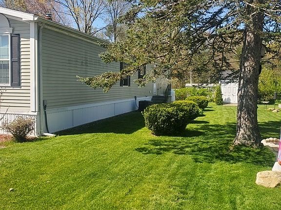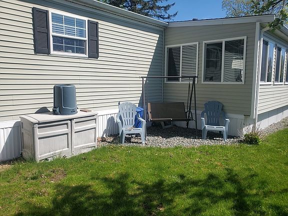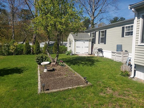 A stunning manufactured home in a beautiful 55+ community in Raynham. This spacious home has 2 bedrooms, 2 full baths which is located in Pine Hill Estates (close to restaurants, hospitals, shopping), This stunning home lives large and features an open concept living area with plenty of cabinetry, comes with Refrigerator, stove, dishwasher, washer & dryer. As you walk into this lovely home you enter into a Large enclosed three season sunroom. To top it off it has central air conditioning. A spacious yard for a garden and relaxing and a large storage shed.