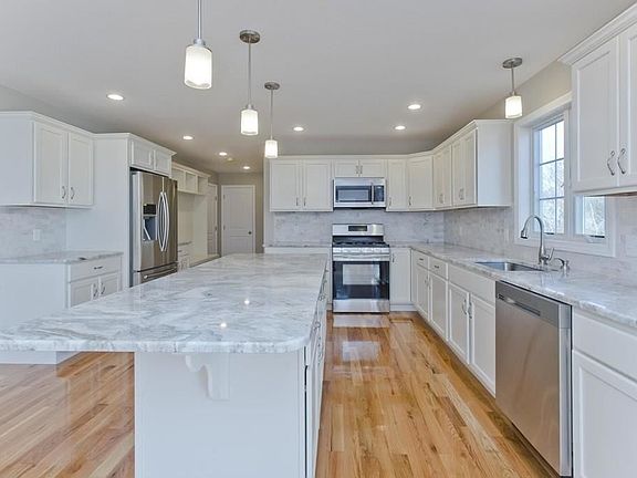 ONLY THREE LOTS LEFT AT BARRINGTON ESTATES! The kitchen is the heart of the home featuring an open concept floor plan, Quartz counters, an abundance of white Shaker cabinets, large center island that can seat 5, stainless steel appliances, and oversized pantry. Mudroom off the kitchen from the attached 2-car garage is great storage space. The completely open living/dining room features gleaming hardwood floors, tons of natural light, sliders out to the TREX deck, and gas fireplace. Live in luxury in your Master Suite with TWO walk-in closets and Master Bath with stunning tiled shower stall, his and hers sinks and linen closet. The spacious guest bedrooms provide great sized closets and the shared full bath with double vanity, tub/shower and linen closet is perfect for guests. And indulge in the privacy of this quiet neighborhood RIGHT ON THE CUL DE SAC!!