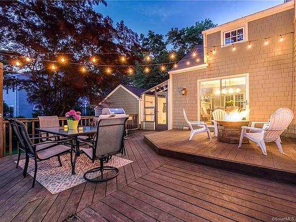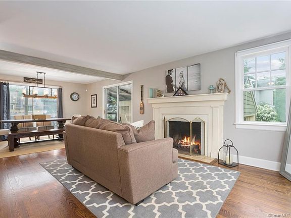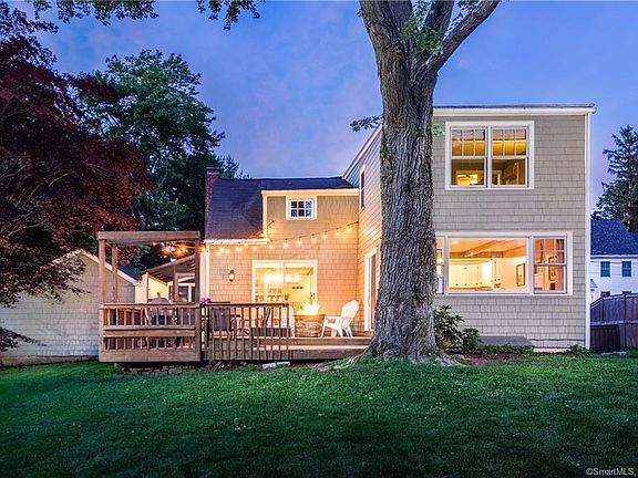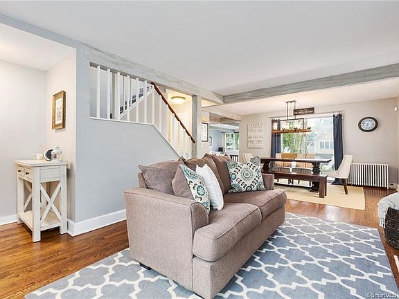 Charm personified... weathered beams, hardwood floors and crackling gas fireplace characterize this classic 4-bedroom Cape! Situated near the end of a Long Lots cul de sac, this home sits on a 1/4 acre of flat, grassy fenced yard with a deck perfect for summer parties. Inside the main floor has an open layout, with living room flowing effortlessly into dining room, kitchen and family room. The kitchen has recently been refreshed with new appliances, freshly painted cabinets and dazzling quartzite counters. A breakfast bar with stools overlooks the bright family room, with sliders to the grilling deck. A bedroom and full bathroom on the ground floor is perfect for family and guests. Upstairs, the spacious master bedroom is flanked by two family bedrooms and a full bath. Storage runs the full width of the house, plus the unfinished basement offers additional possibilities. This house is an easy walk to Long Lots Elementary, including its fun playground and community garden. Get in this summer to enjoy all that Westport has to offer: sandy beaches, YMCA, Longshore Club, downtown shopping, varied restaurants and a brand new library. Add to this award-winning schools and easy transport options to NYC and you can see what a gem this home is.