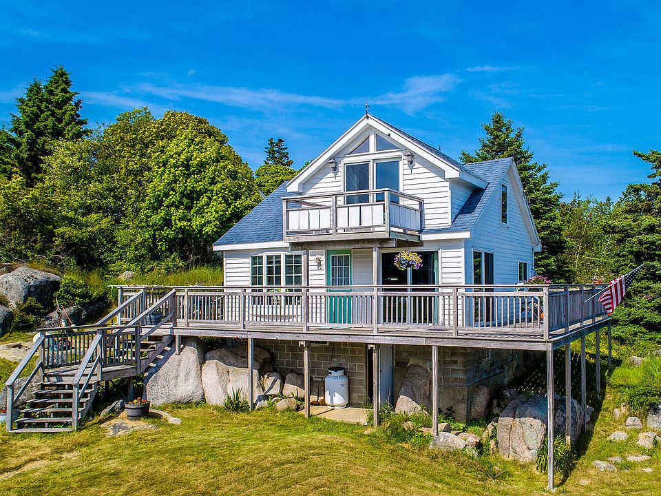 Easy island living in this 1-Bedroom, 2-Bath, in-village cottage with HUGE water views! This well-built cottage enjoys sweeping views of Deer Isle Thorofare, the islands, and beyond to Isle au Haut!. Enjoy watching the daily boating activities from your deck, the manageable yard, or inside the home. The lower level includes a kitchen, living and dining area (with direct deck access to the water-view deck!) and a full bath. Upstairs is an inviting bedroom suite with a full bath and a balcony with outstanding views of the Thorofare and Stonington Harbor. A full basement and small outbuilding add storage and function.The entire property enjoys southern exposure. This position of the cottage allows for easterly sunrise views as well as sunset views. ***Reasonable Offers Considered***
