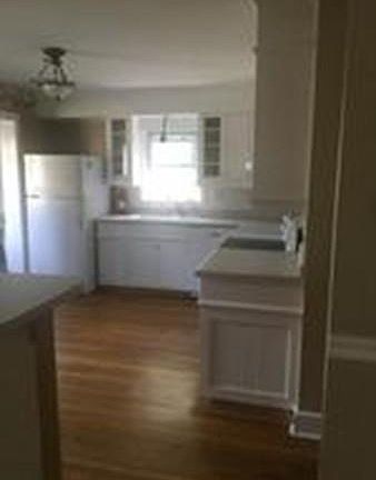 This is a great 3 bedroom Cape conveniently located close to the center of town and schools. 2 full baths (one on first floor and second full bath upstairs). Featuring wonderful front to back living room with ceiling fans and a slider to deck overlooking nice fenced back yard, it also offers hardwood floors throughout first floor, economical gas heat, and easy maintenance vinyl sidings & replacement windows. The dining room and kitchen with island is a nice open area. The finished lower level is a bonus with additional living space that can be used as a play room, den and office - and there's a rear door to another deck and yard for outdoor enjoyment! This home is move in ready and a quick closing is fine if desired.