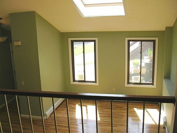 Welcome home. Immerse yourself in this recently and beautifully updated end unit nestled in tranquil and bucolic splendor. Spacious open floor plan with updated kitchen opens to dining room overlooking sky-lit entry foyer. Three generous sized bedrooms, stunning hardwood floors and deck. Finished lower level storage. Near train, airport and highways makes this move-in town home close to all. New baths, striking arch features and bathed in sunlight; the perfect choice and price. Square footage does not include finished lower level. Pool, parking, pets. Taxes DO NOT reflect STAR. Commuters delight.
