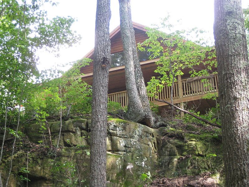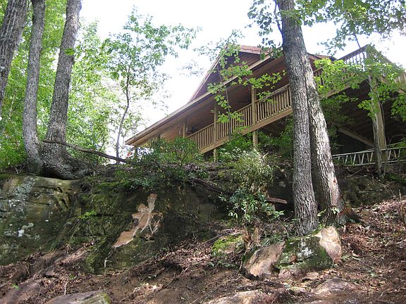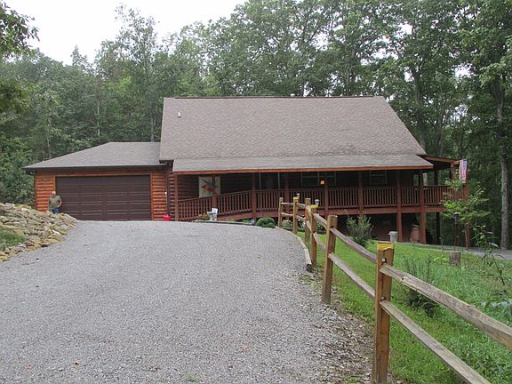 Custom built log siding with double car garage and wrap around covered decks. Built in new community of 5-20 acre home sites. Home sits in wooded area with beautiful views of bluff with cave. ATV trails and creek at bottom of property. There are two bedrooms on main floor and bedroom and bath on the loft area.The unfinished walk out basement has great storage and workshop area about 15X40 feet.