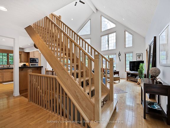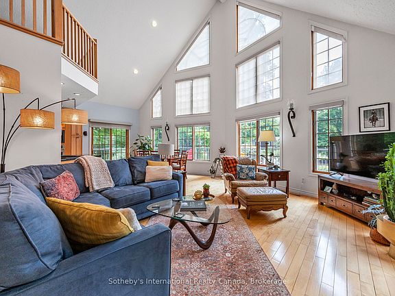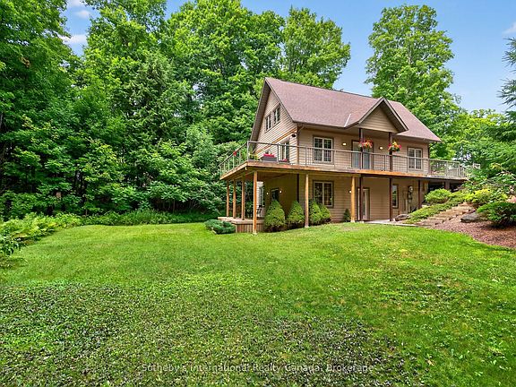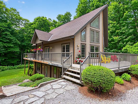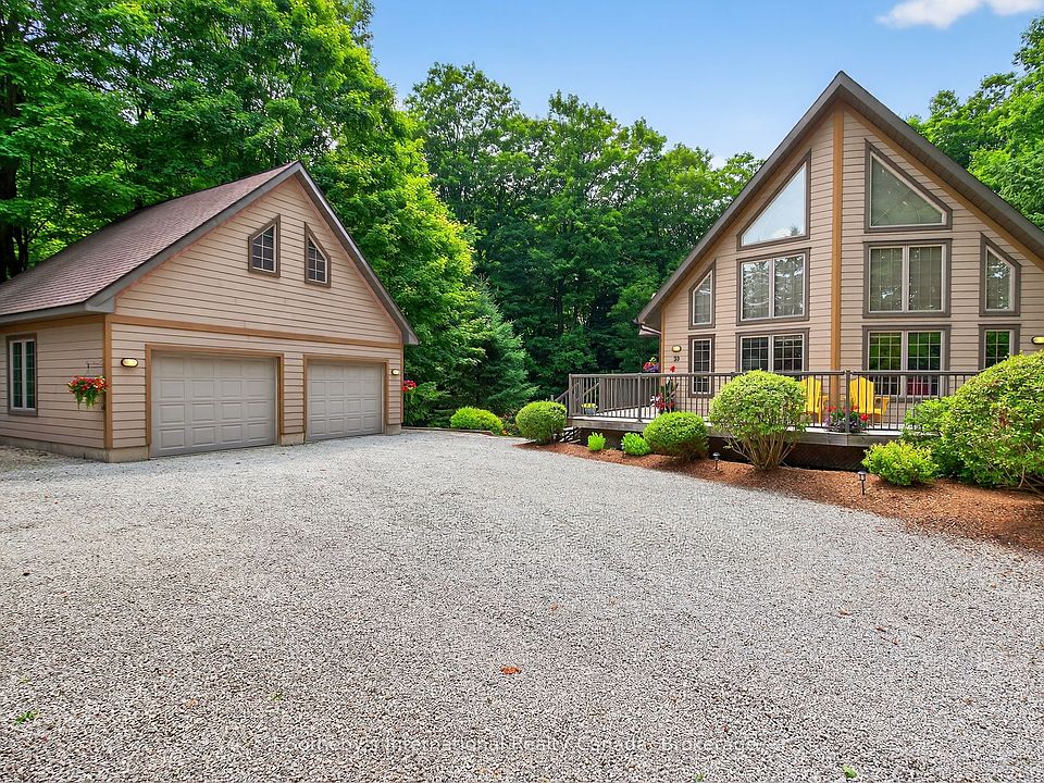 Welcome to 28 Big Tree Circle, a stunning, architecturally designed home offering over 2,500 square feet of finished living space, including a total of 4 bedrooms and 3 bathrooms. Tucked away on a private 1-acre lot in a peaceful forest setting, this exceptional property is ideally located just minutes from the Mansfield Ski Club, Mansfield Outdoor Centre, and a short walk to the Boyne River perfect for all-season recreation. Enjoy easy access to scenic hiking and biking trails, the charming village of Creemore, and the vibrant town of Collingwood. Inside, this beautifully crafted home features gleaming maple flooring, a granite and maple kitchen, and an impressive open-concept living, dining, and kitchen area highlighted by a dramatic wall of east-facing windows that flood the space with natural light and frame the surrounding forest. The thoughtfully designed layout includes a private second-floor primary bedroom retreat complete with a 4-piece ensuite, a cozy sitting area overlooking the main living space, and a private deck nestled among the treetops. The main floor offers flexibility with a bedroom or office and an adjacent 3-piece bathroom ideal for guests or remote work. The bright, fully finished, above-grade walk-out lower level features two additional spacious bedrooms, a 3-piece bath, a large games room with a pool table, a cozy TV area, and an inviting porch sitting area perfect for enjoying your morning coffee or unwinding in nature. A detached double car garage provides ample space for vehicles, toys, and storage, while the loft above offers a perfect bonus area for your hobbies, studio, home office, or additional storage. Whether you're looking for a weekend getaway or a full-time residence, this exceptional home offers a rare combination of natural beauty, modern comfort, and an unbeatable location just one hour from Toronto Pearson International Airport and the GTA.