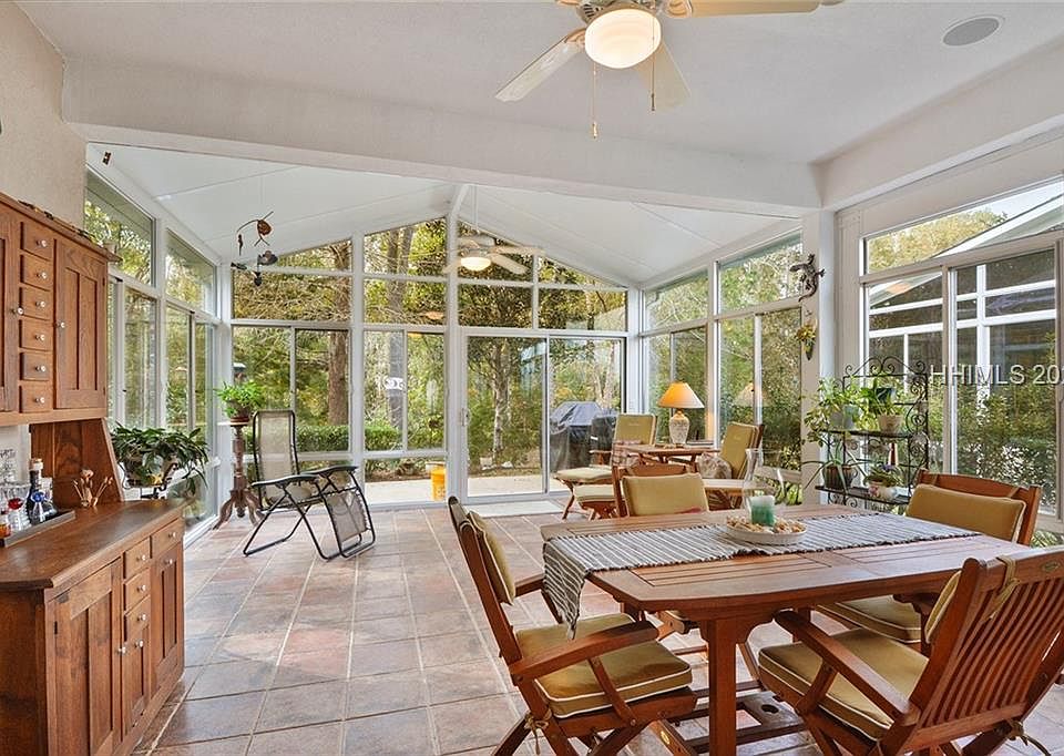 Immaculate Heather model with tiled 15x20 sunroom with heat and air on a private lot. 2 BR, 2 BA plus den with many upgrades to include architectural tile, new ss appliances, kitchen has Quartz countertops, sliders in cabinets w soft close, Lazy Susan and built-in desk, surround sound, smooth ceilings, bay window, luxon paint, ext. garage with pulldown stairs, attic fully floored, tankless hot water, new roof and more!!!
