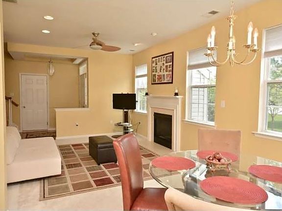 Beautiful Barrington end unit. Welcoming entry foyer with coffered ceiling. Marble surround gas fireplace is the focal point of the formal living which is open to sunny dining room, The kitchen with 42 inch maple cabinets and crown moldings has plenty of counterspace and a cheerful eating area with sliders to patio. Upstairs master bedroom with tray ceiling, 2 walk in closets, both with closet organizers, private bath with soaking tub. Two more spacious bedrooms, hall bath and convenient laundry room. Other amenities include hardwood floors on first floor, two car side entry garage. Come see this today!