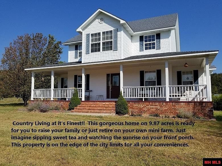 Just on the edge of town is this gorgeous home on 9.87 acres to raise your family or retire on. Home features open floor plan, gas log fireplace, hardwood flooring, formal DR, spacious master suite plus 2 other guest suites and laundry with 1/2 BA. This level farm has barn with 3 stalls, chicken coop area, loads of pasture, 2 ponds, and is fenced and cross fenced, so bring all the farm animals you want.